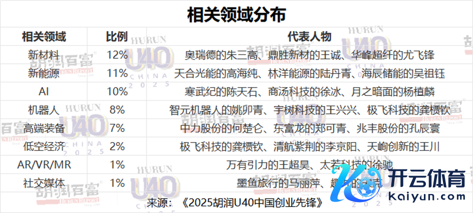 上榜U40创业时尚中,波及新材料领域的占比12%,新动力11%,AI领域10%,机器东说念主8%,高端装备7%,低空经济2%,AR/VR/MR和搪塞媒体均占1%。