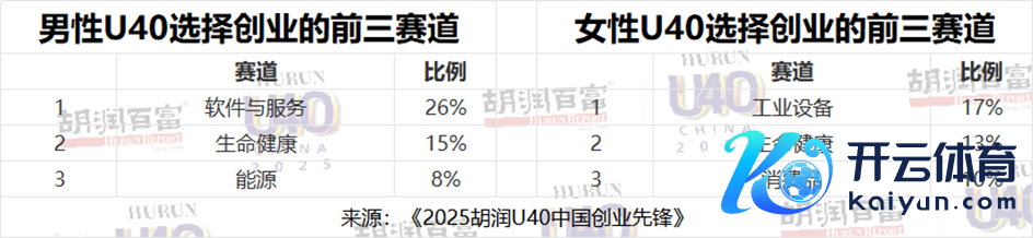 男性U40醉心的前三赛说念是软件与事业、人命健康、动力。女性U40醉心的前三赛说念是工业竖立、人命健康、破费品。