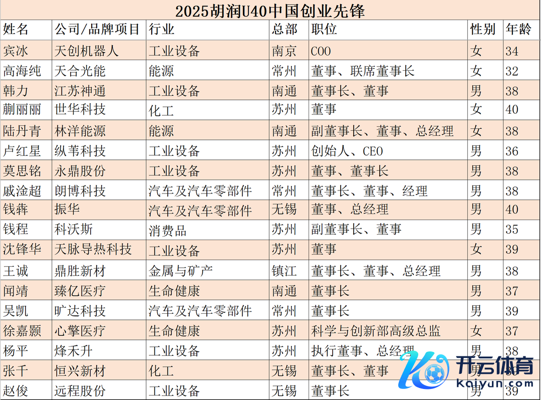 11月7日,《2025胡润U40中国创业时尚》发布。“胡润U40中国创业时尚”旨在寻找中国40岁及以下的创业时尚。195东说念主登榜,来自寰宇53个城市。记者梳剪发现,公司或口头总部位于江苏的18东说念主上榜,其中苏州7东说念主,常州、南通、无锡各3东说念主,南京、镇江各1东说念主。