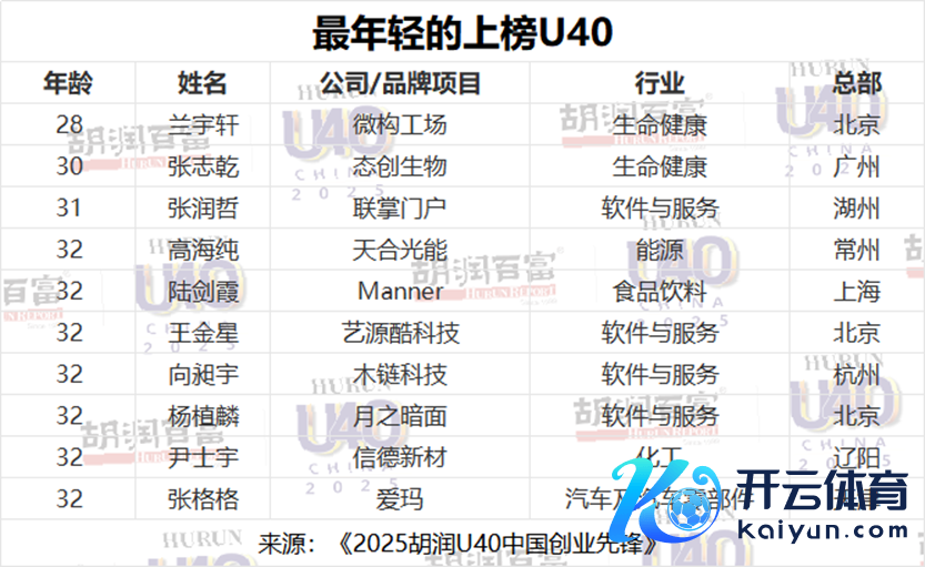 《2025胡润U40中国创业时尚》的上榜者中,男女占比85%和15%。28%销售软件或事业,72%销售实体居品。平均年岁37岁,平均在28岁时创办了他们的企业。