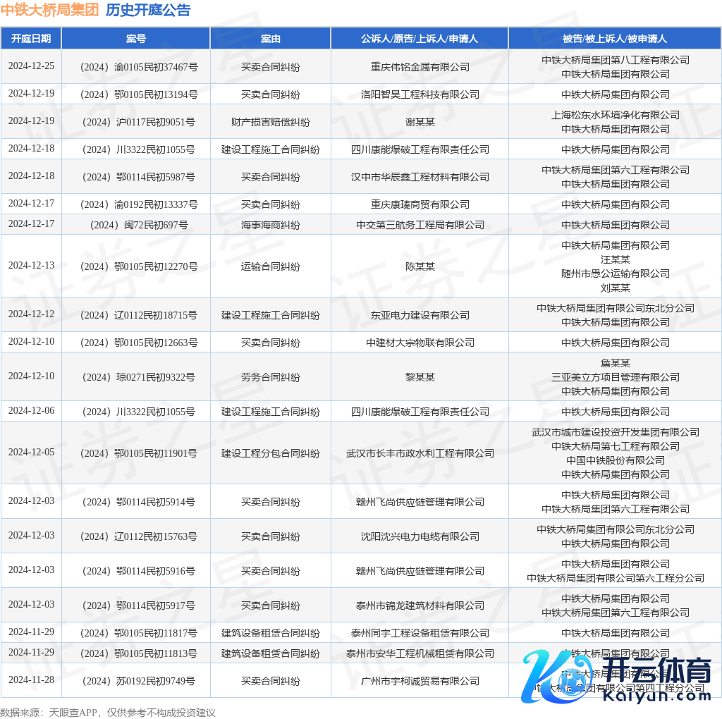 本站音问开云体育,把柄天眼查APP披露,近日公布了一则中铁大桥局集团有限公司当作被告/被上诉东谈主的开庭公告,注释实验如下: