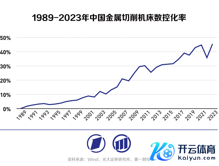 不外我国的机床数控率仍有较大普及空间。据中国机床用具工业协会数据,2023年金属切削机床数控化率为45.5%。日本机床数控化率保管在80%以上,好意思国和德国机床数控化率均进步70%。