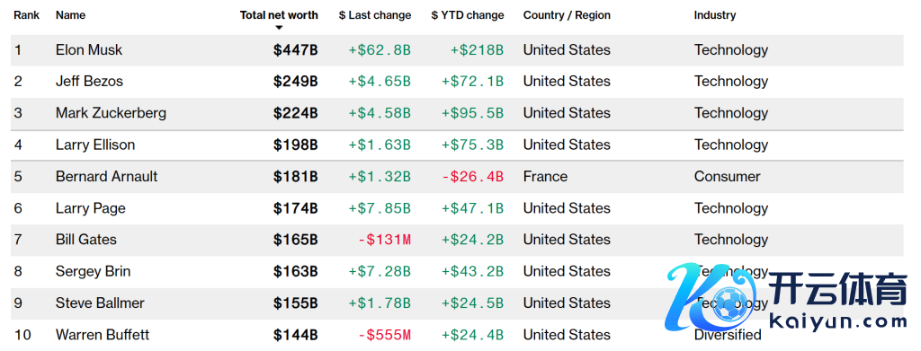 彭博亿万财主指数前十位。着手:彭博亿万财主指数