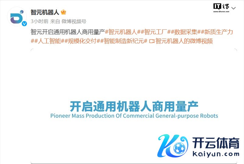 IT之家 12 月 16 日音问开yun体育网,智元机器东说念主本日发布视频通知,智元开启通用机器东说念主商用量产。