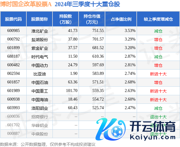 博时国企革命股票A为股票型基金,把柄最新一期基金季报露出,该基金钞票设立:股票占净值比91.2%,无债券类钞票,现款占净值比7.8%。基金十大重仓股如下: