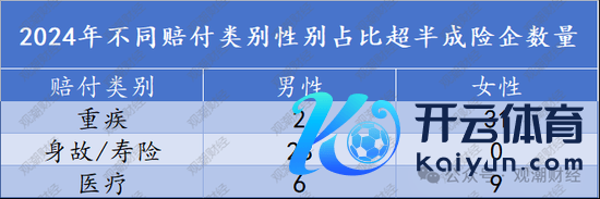 从各险种赔付性别占比情况看,东谈主身险企重疾赔付客户中,女性更多;身死/寿险赔付客户中,男性更多。