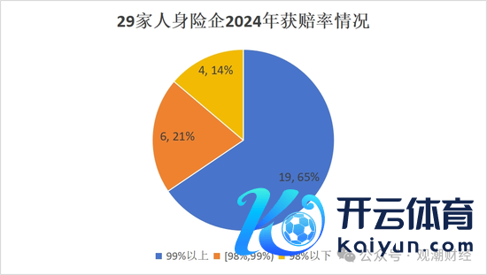 此外,还有6家险企2024年获赔率在98%-99%之间,永诀为海港东谈主寿、百年东谈主寿、中华东谈主寿、高贵东谈主寿、上海东谈主寿、横琴东谈主寿。