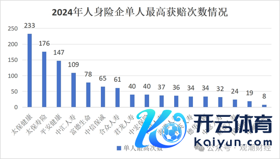 此外,不雅潮财经发现,有17家险企向客户提供屡次赔付办事。其中,太保健康一客户全年统统获赔233次,平均一天半获赔一次;瑞世东谈主寿某客户脑中风身死获赔超3,000万。太保寿险、吉祥健康、中汇东谈主寿年内均为单客户提供超百次赔付。