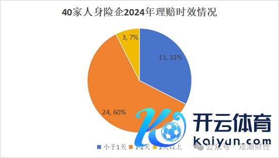 24家理赔时效在1-2天的险企中,弘康东谈主寿显露其线上理赔时效,为1.38天。值得关心的是,仅昆仑健康、上海东谈主寿、高贵东谈主寿3家险企2024年理赔时效跳跃2天但未超4天,永诀为3.43天、3.19天、2.51天。