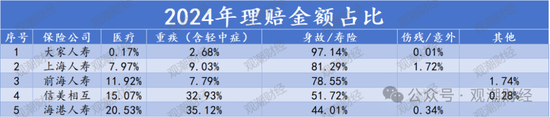 另外,瑞泰东谈主寿、爱心东谈主寿、公共东谈主寿3家险企2024年理赔件数中非医疗险占主要隘位。