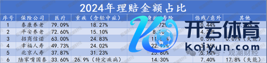 此外,2024年中国东谈主寿、吉祥东谈主寿、太保寿险、吉祥养老、新华东谈主寿、泰康养老6家险企理赔金额跳跃百亿,永诀理赔603.9亿元、419.4亿元、205亿元、180亿元、152亿元、101.4亿元。