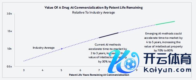 目下的 AI 关节不错将诞生时分镌汰 2-3 年,使药物常识产权价值提高 30%-50%。而新兴的 AI 筹画关节有望将诞生时分镌汰 4-5 年,常识产权价值擢升 70%-80%。