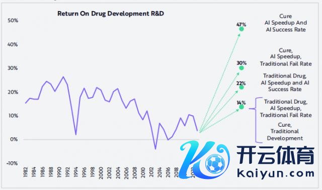 那些罗致 AI 时间、专注诞生治疗性药物的公司,其研发还报率有望达到 30%-47%,远高于行业平均水平。