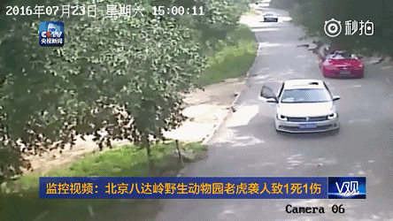就在这个工夫,她死后出来了一只猛虎,他们后头的车也发现了这一情况,就赶快鸣笛。当赵菁发现猛虎时,还是来不足了。