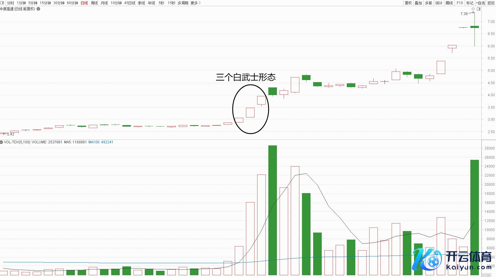 (6)在三个白武士造成经由中,若是其阳线实体冉冉加长,同期成交量也呈现递加态势,则诠释多方力量正在不断增强,后市看涨概率将大大提高。